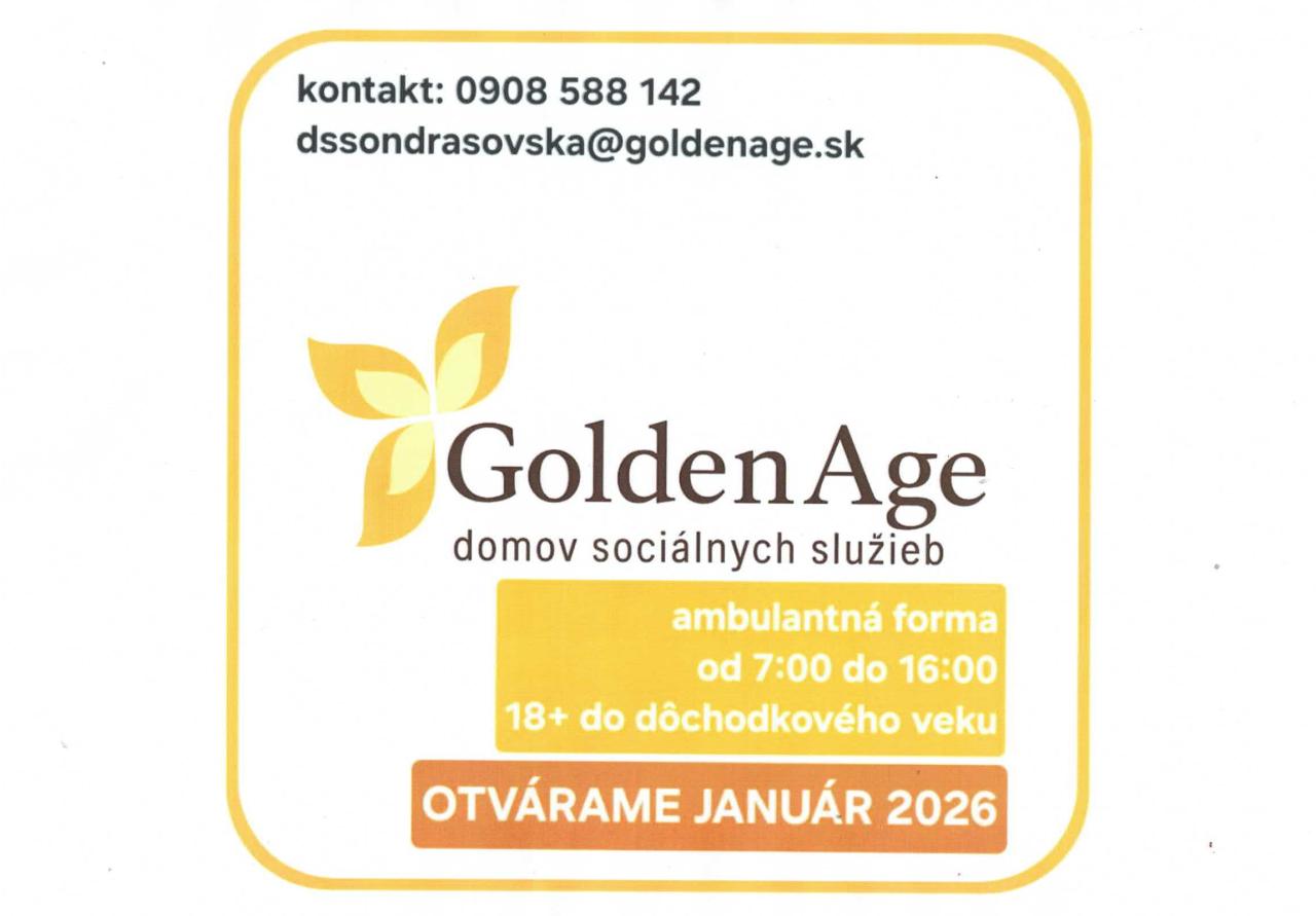 Golden age, domov sociálnych služieb LM, ponúka moderné, bezbariérové a nadštandardné zariadenie, v ktorom by ste ambulantnou formou Vy alebo Vaši príbuzní mohli bezpečne, zmysluplne, užitočne a aktívne tráviť svoj čas. Všetky bližšie informácie nájdete v prílohe tohto oznamu.